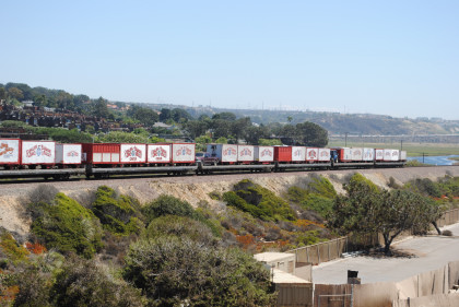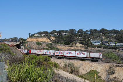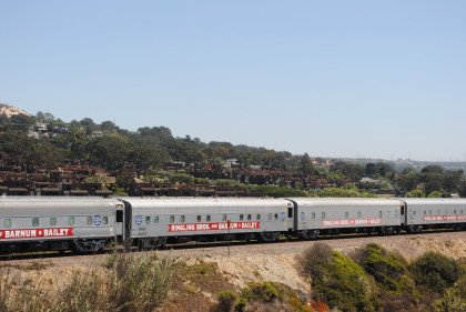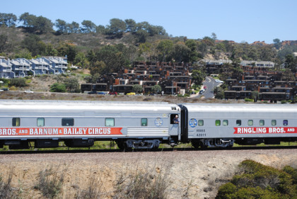 There you have our first pictures of the northbound chase of the Ringling Bros. and Barnum & Bailey Blue Unit Circus Train south of Del Mar. Now let the chase begin with the next stop at Califia Beach.