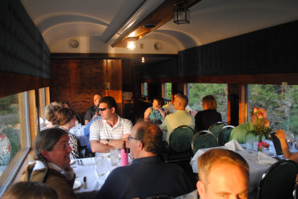 The Columbia Star will be offering dining on-board our beautifully appointed vintage 1930's and 1940's passenger cars pulled by 1950’s streamlined passenger locomotives on a relaxing 3 hour journey between Columbia and Centralia. Come and recapture the romance of a bygone era while watching the Missouri landscape roll by your window. While on-board, our guests will be treated to unique appetizers, drinks and a Chef-prepared elegant five course gourmet meal all prepared right on the train. Prestigious railroad dining is recreated on white linen and fine china by candlelight with exemplary service from our wait staff. Friendly, courteous bartenders will do their part to get your journey off to a cheerful start with only the best brands of beverages, liquors, wines and liqueurs from our fully stocked bar.
