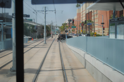 We dropped down to the ground after the Expo/La Brea station.