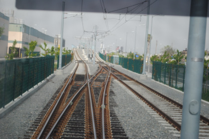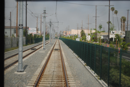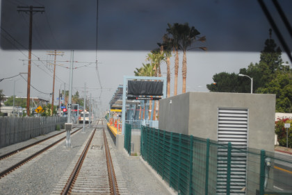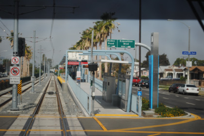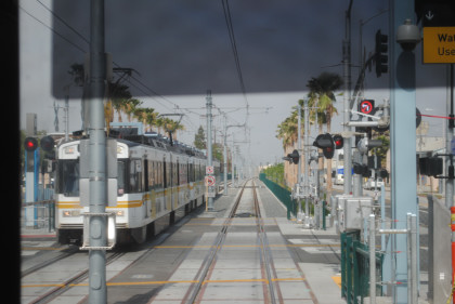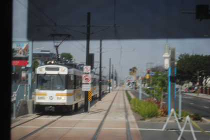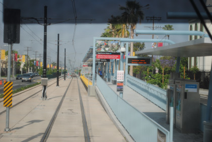 The location at which the Expo Line will be built beyond Culver City. From here we returned east to the Pico Station where we just missed a train to Long Beach. First another Expo Line train arrived followed by an eastbound Expo Line train before ours for Long Beach. Once we made the turn onto Washington Boulevard on the Blue Line, AC Adam was again on new rail mileage. We took the train down to Long Beach, going around the loop there and returned to Imperial/Wilmington station where we detrained and went up the stairs to the Green Line.
