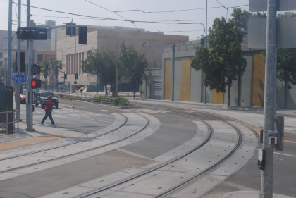 Climbing the grade towards the Culver City station.