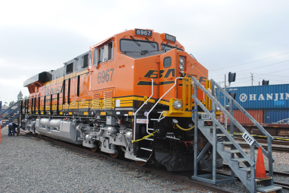 BNSF ES44C4 6967 built by General Electric in 2012.