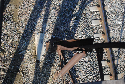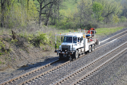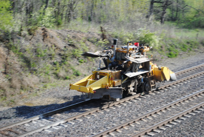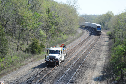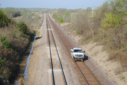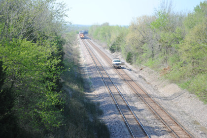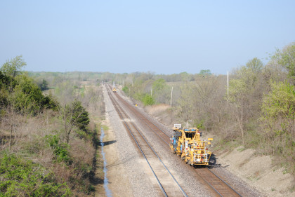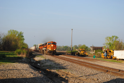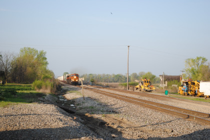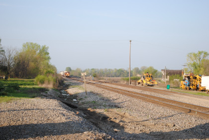More track equipment came by during that last train. We then headed to the Newton Road grade crossing via Anchor Avenue and turning right on Newton Road.
