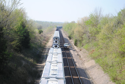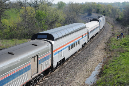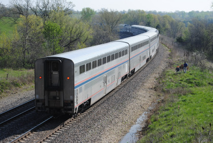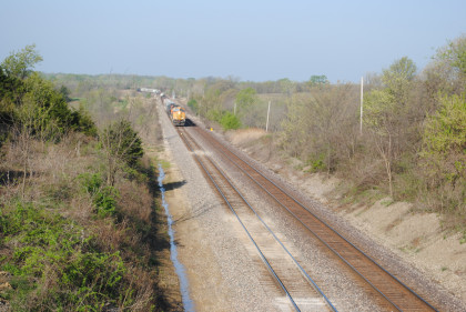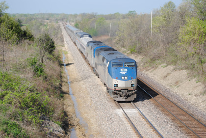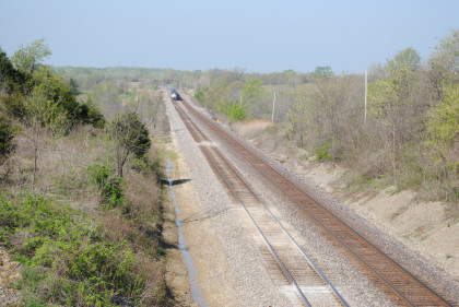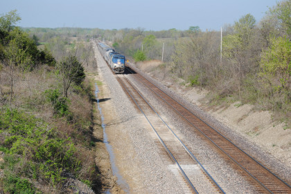 The Southwest Chief with the last Amtrak dome car dead-heading to Beech Grove. We then moved to the third bridge west of Ethel via Bayport Avenue, turned right on Bison Street then right on Route VV to the bridge.