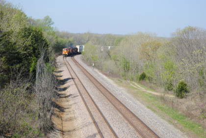 BNSF 5860 East. Our next stop was at the fourth old bridge west of Ethel by back-tracking down Route VV, turning right on Route EZ and left on Anchor Avenue.