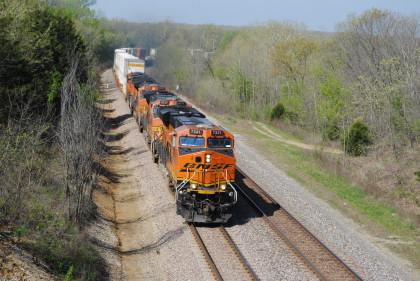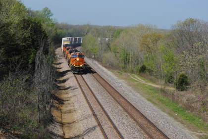 BNSF 7331 East at the fourth old bridge west of Ethel.