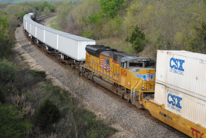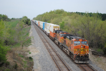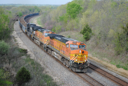 BNSF 7297 West at the old bridge just east of Wyaconda.