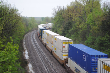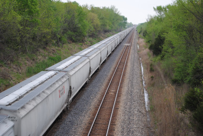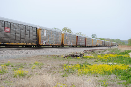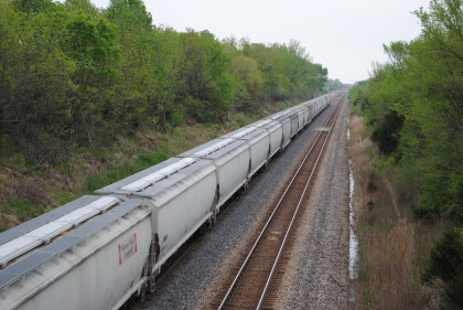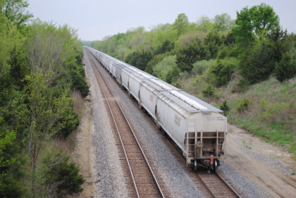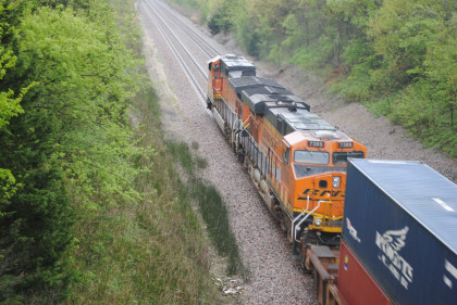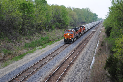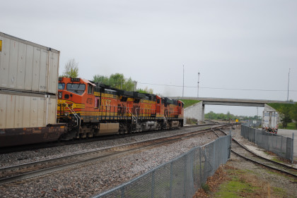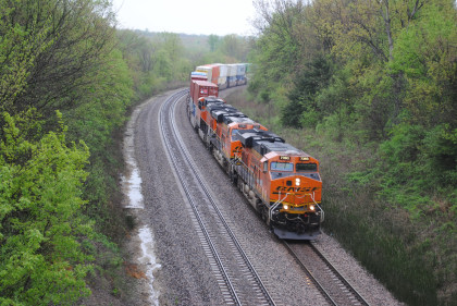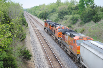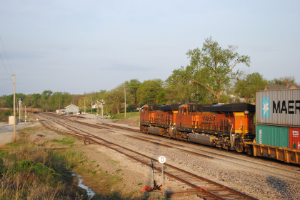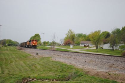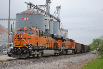 BNSF 7393 West. From here we went via Bison to Bayport Avenue to Beaver Street to Missouri Highway 149 and the grade crossing in Ethel.