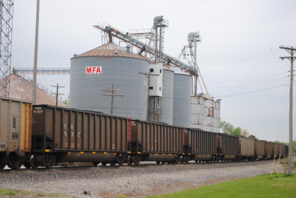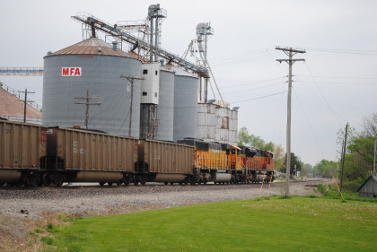 We met in the lobby at 7:00 AM and soon Nathan Childester, Winston and Christy Walker and myself left the Depot Inn & Suites via Missouri Highway 156 and Missouri Highway 3, to Route J to Route M into Ethel where we set up for our first train of the morning.