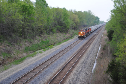 BNSF 4116 East. We took Route UU back to Bosworth, then Route M to Missouri Highway 11 to Route E, to Route JJ to Kansas Road into Marceline.