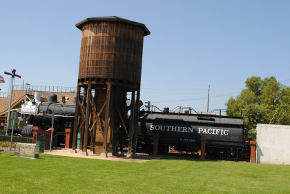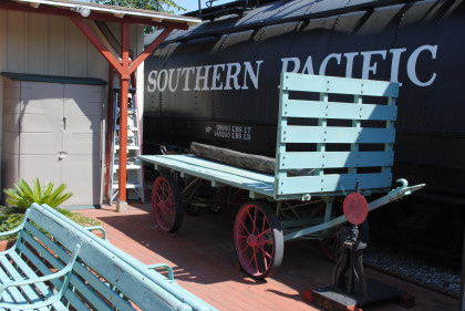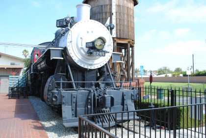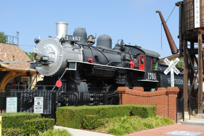 Southern Pacific 2-6-0 1765 built by Baldwin in 1902. It mainly hauled freight but also occasionally, worked light passenger trains. It was based in the Los Angeles area and was sometimes assigned in helper service over the Soledad Canyon summit to Palmdale. The locomotive was retired in 1958 and two years later, was sold for scrap to the National Metals Company on Terminal Island where it remained until bought by Irene Lewis in 1966 for display at the museum.