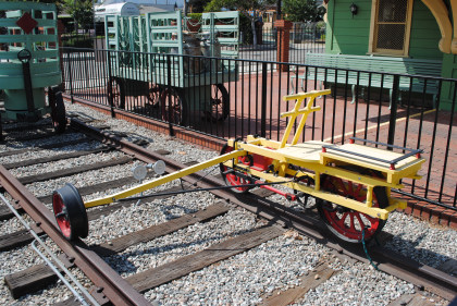 A velocipede built for the Maine Central Railroad by Fairbanks Morse and Company in 1881. Riders provided the propulsion with the combined use of hands and feet. It was refurbished in 1990.
