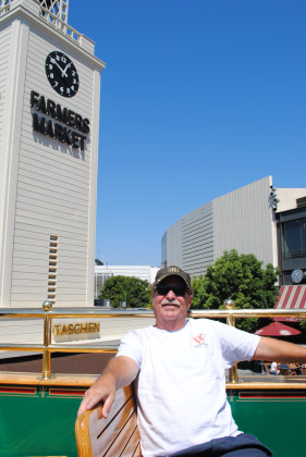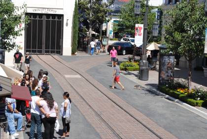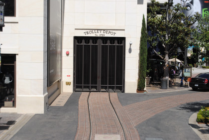Chris Parker and I drove to The Grove/Farmers Market in West Los Angeles and parked in the parking structure then went downstairs and soon saw the trolley barn but noticed that the trolley was not there. We walked the line and found it at the west end.