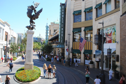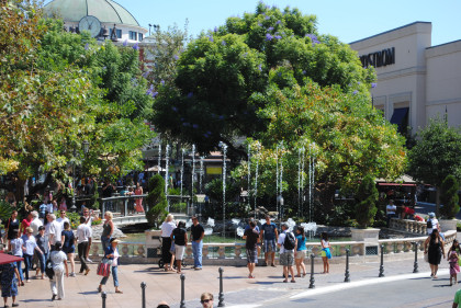 The fountain was built by WET Design, the same company who built the fountains at the Bellagio in Las Vegas. The water feature and pond recycle its water every two hours. We then proceeded east.