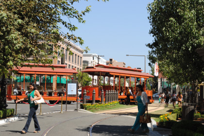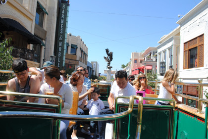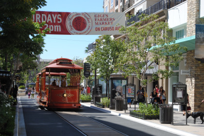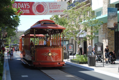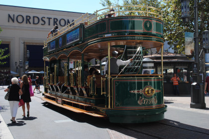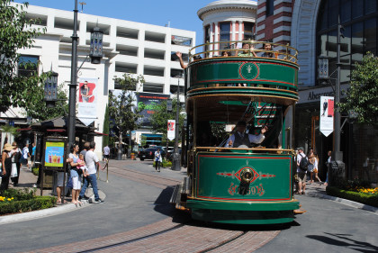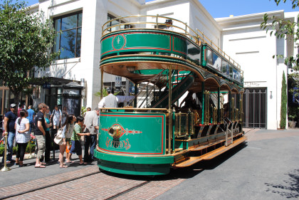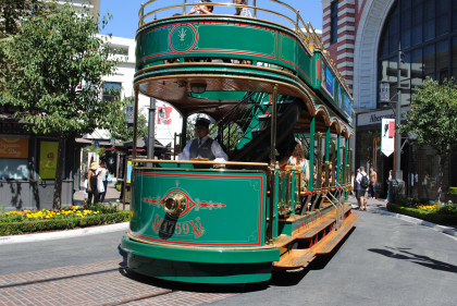 The Grove TrolleyTake a ride on our double-decker trolley! Built on an historic undercarriage from a 1950s Boston street car, The Grove trolley travels along First Street between The Grove and The Original Farmers Market, taking you on an exciting tour of the property. Powered electrically, The Grove trolley is the first use of inductive power technology in the United States for a transit system.