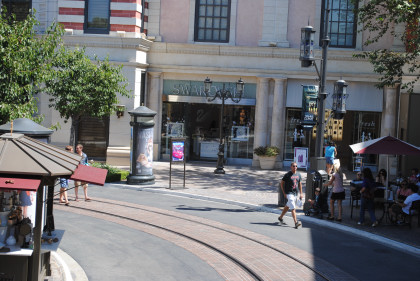 The trolley returned to the station then Chris and I took seats in the trailer and took our one lap around Americana Plaza.
