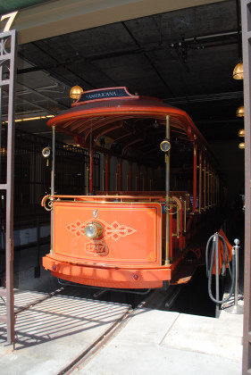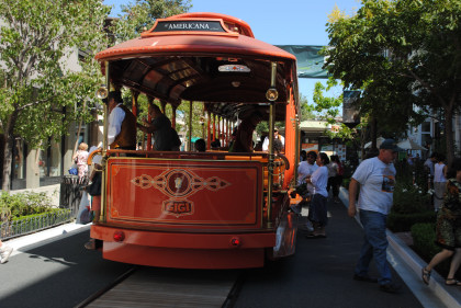 I had never taken a good picture of the Hollywood sign before. From here we drove surface streets to Glendale and our next stop at the Americana Plaza where we parked in their parking structure and walked down to where their trolley is kept.