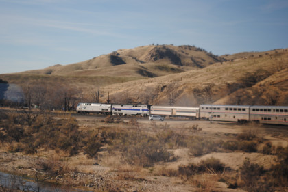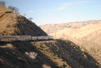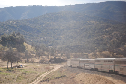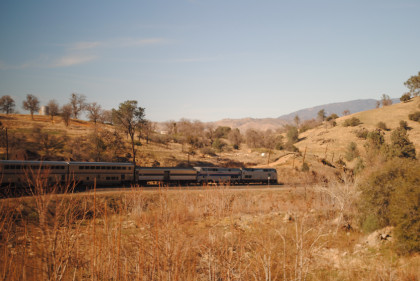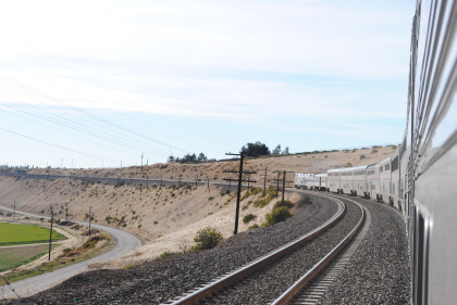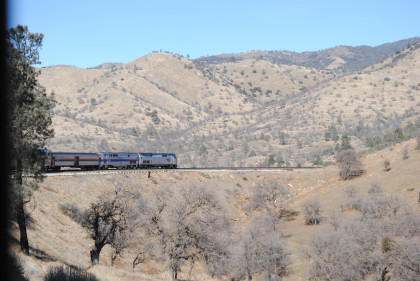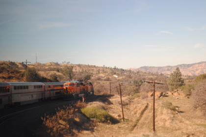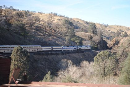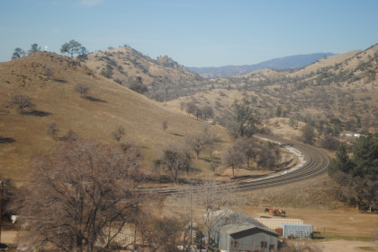 The view from Marcel. We went through the 307 foot Tunnel 12 and the Tehachapi Loop came into view.