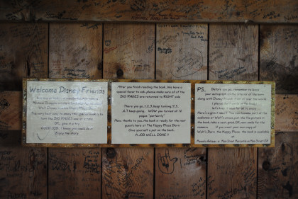 Signs about the Disney Barn.