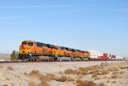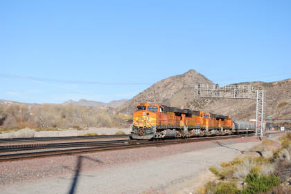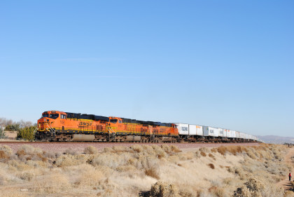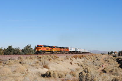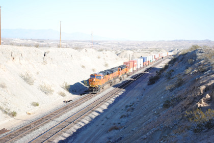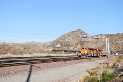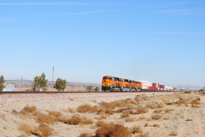 Further down Route 66 Highway, BNSF 6727 West came by us and from here we drove into Barstow.