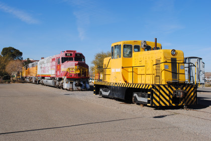 Western American Railroad MuseumThe sign for the Western American Railroad Museum. The museum collects, preserves and shares the history of railroading in the Pacific Southwest. It is located on the east side of the Harvey House Railroad Depot and is operated by a non-profit organization. It houses displays inside the depot such as railroad artifacts, artwork, timetables, uniforms, tools and various other types of memorabilia, as well as locomotives and passenger cars outside.