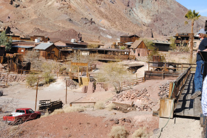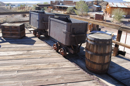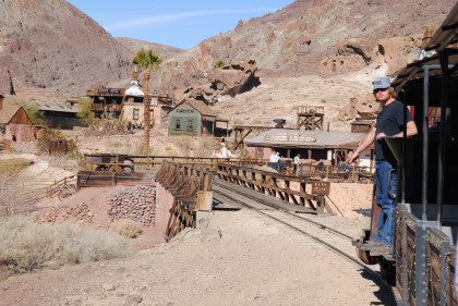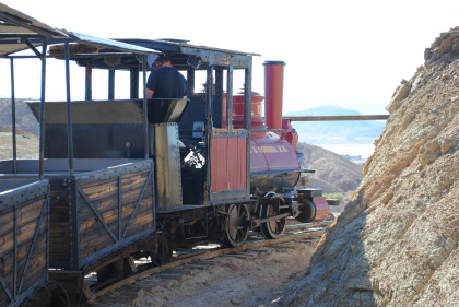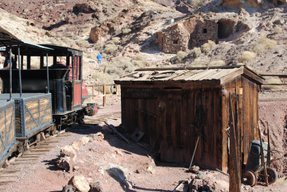 Calico/Odessa Railroad Trip History of CalicoIn 1881 four prospectors were leaving Grapevine Station (present day Barstow, California) for a mountain peak to the northeast. Describing the peak as "calico-colored", the peak, the mountain range to which it belonged, and the town that followed were all called Calico. The four prospectors discovered silver in the mountain and opened the Silver King Mine, which was California's largest silver producer in the mid-1880s. A post office was established in early 1882, and the Calico Print, a weekly newspaper, started publishing. The town soon supported three hotels, five general stores, a meat market, bars, brothels and three restaurants and boarding houses. The county established a school district and a voting precinct. The town also had a deputy sheriff and two constables, two lawyers and a justice of the peace, five commissioners and two doctors. There was also a Wells Fargo office and a telephone and telegraph service. At its height of silver production during 1883 and 1885, Calico had over 500 mines and a population of 1,200 people. Local badmen were buried in the Boot Hill cemetery.