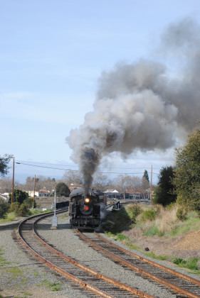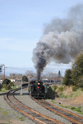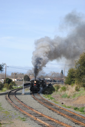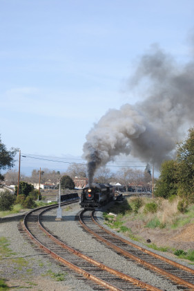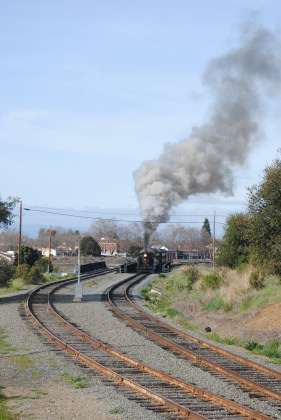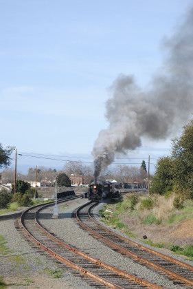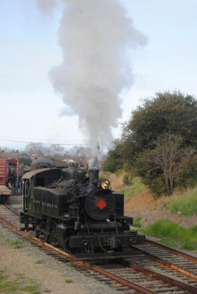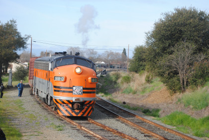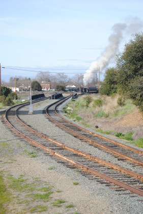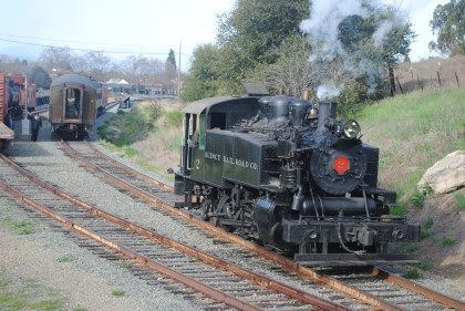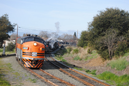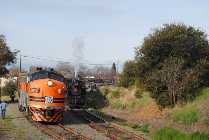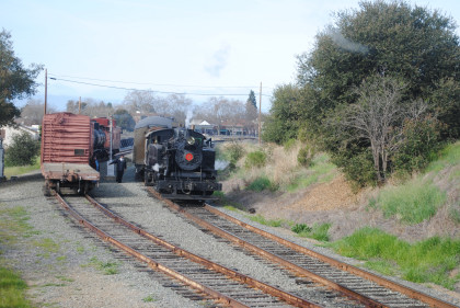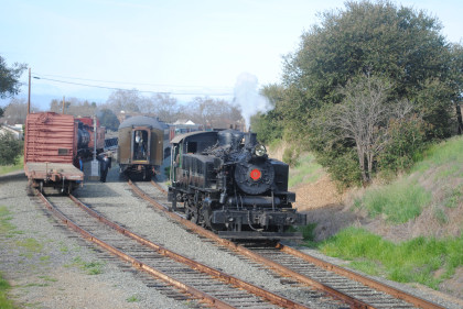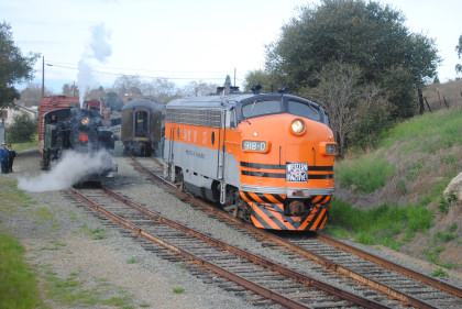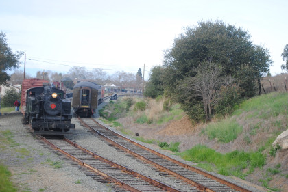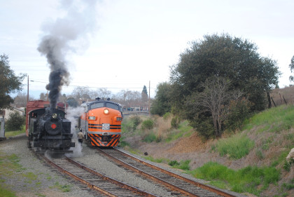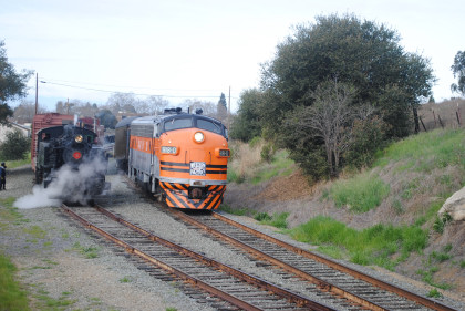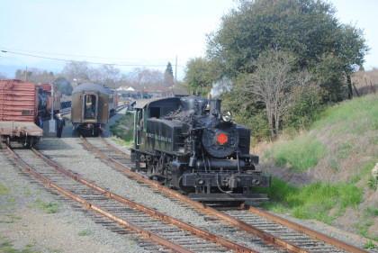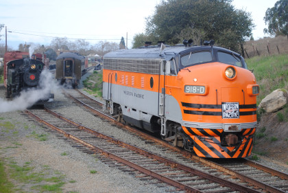 We were at Niles and the engines would now switch trains to pull back through the canyon. Can you believe that these two engines most likely once met at Quincy Junction, as they are today at Niles in 2012?