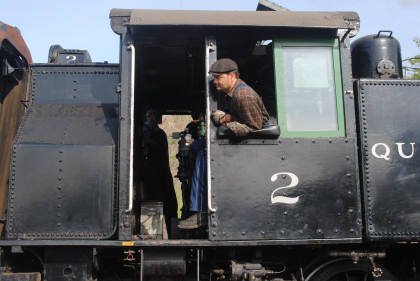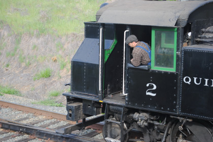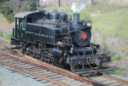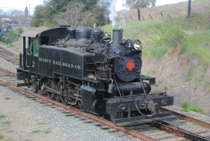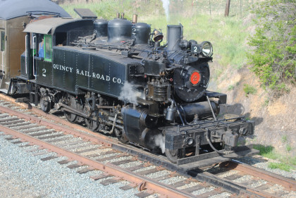 Western Pacific 918-D came first, ran by us then cleared the switch by plenty to let Quincy Railroad 2-6-2T 2 follow.