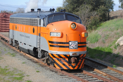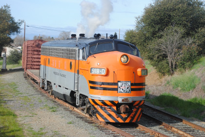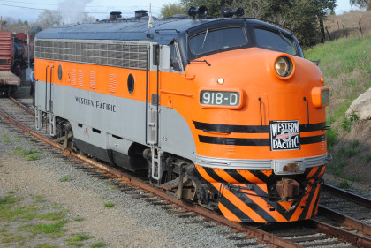 Western Pacific 918-D with its freight train performed photo runby 3 as it left Niles.