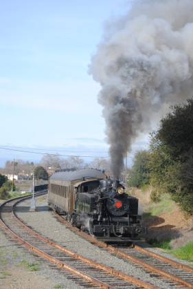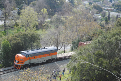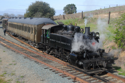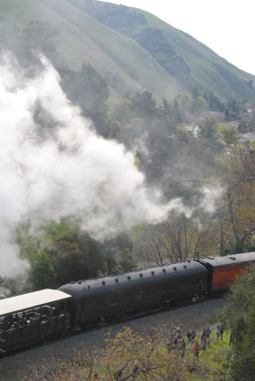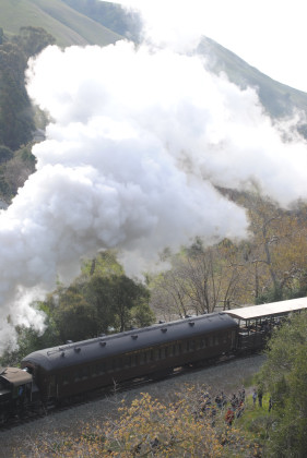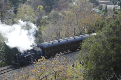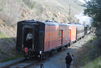 Photo Runby 6 with the passenger train. I climbed safely down back to the train then had a Coca-Cola onboard as the train continued up Niles Canyon.