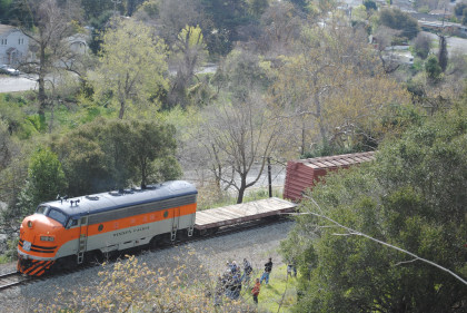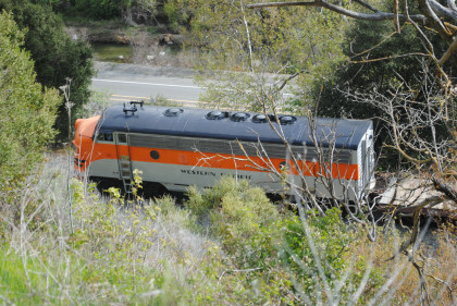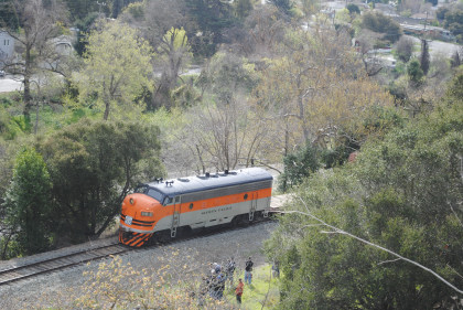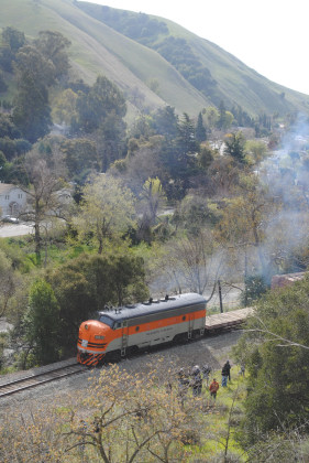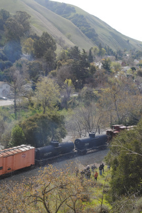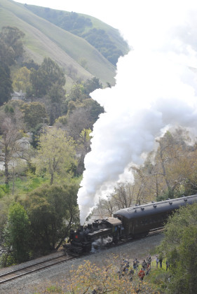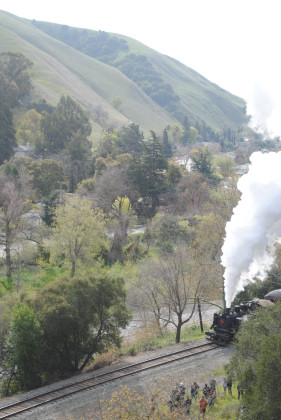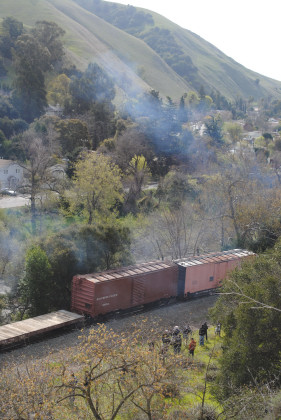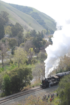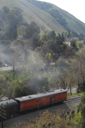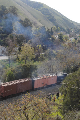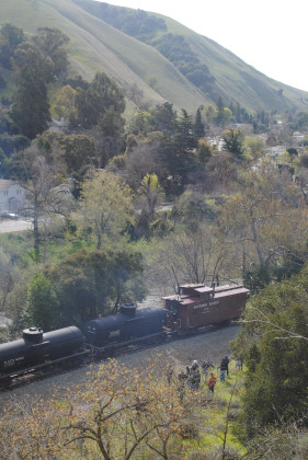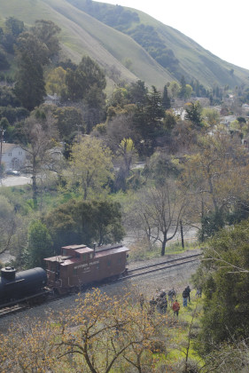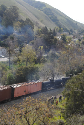 The passengers returned to our train and we departed Niles, heading east into Niles Canyon to the next photo runby location where I used my mountain goat skills to gain elevation.