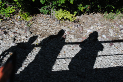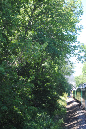 We came across the bridge and our passengers detrained. The first 18 followed me across a small bridge one at a time then up a trail to the overlook, and I would take pictures with each of the groups. I suggested everyone photograph the reverse move in case the sun wento behind the clouds during the runby.