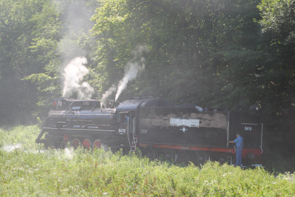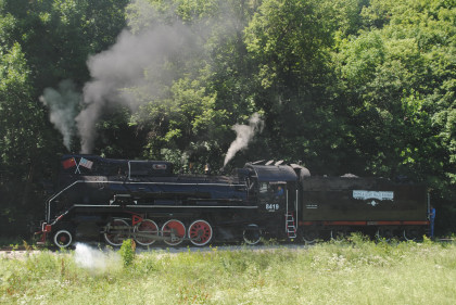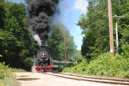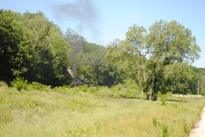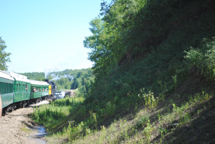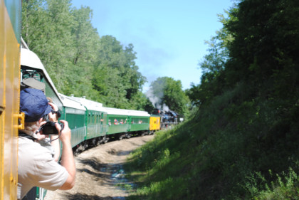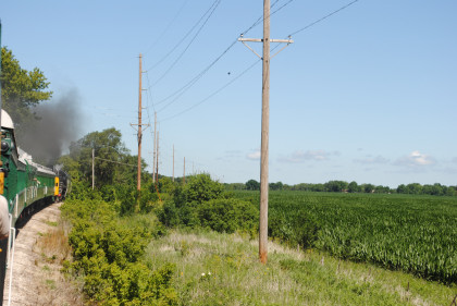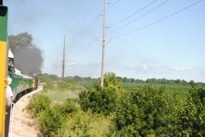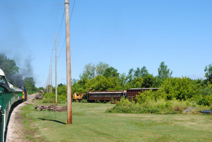 The steam engine ran on the siding around the train. Once connected we started back with the steam engine leading. Photo runbys were then announced with the first only a few minutes away. We reached the spot and unloaded the train.