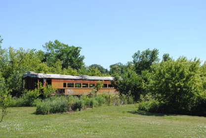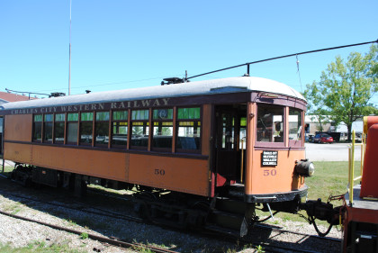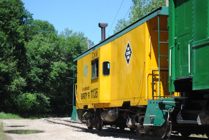 Boone and Scenic Valley 45 ton switcher 1858 built by General Electric in 1944. It was used to switch the Iowa State University power plant, which was supplied with coal by rail along the remnants of the old Ames and College Railway, later purchased by the Fort Dodge, Des Moines and Southern. The number of the locomotive reflects the year in which Iowa State College of Agriculture and Mechanic Arts, the predecessor of Iowa State University, was established. The locomotive was loaned to the Boone and Scenic Valley after the ISU power plant began receiving its coal by truck. It has been repainted in the Iowa State colors of cardinal and gold.