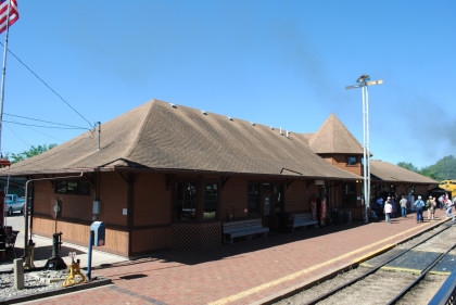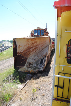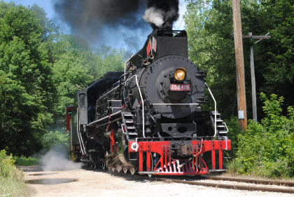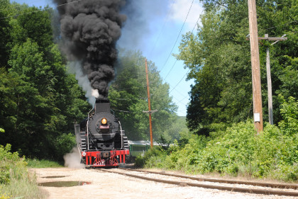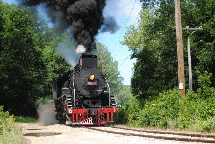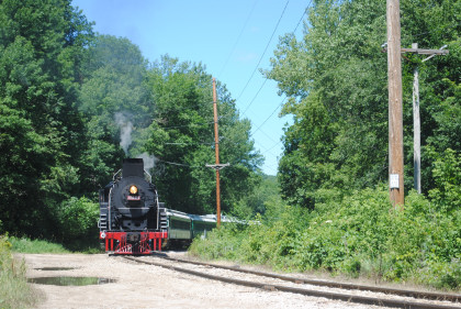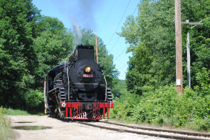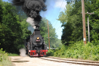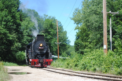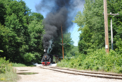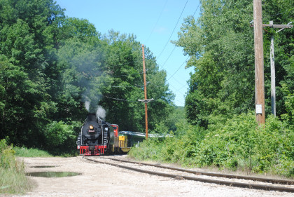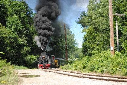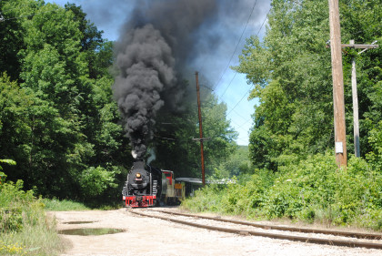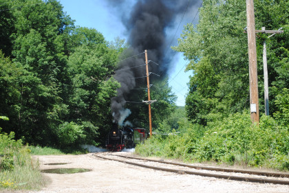 Boone and Scenic Valley 45 ton switcher 1858 was bringing out the trolley for rides after we return.