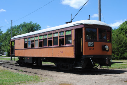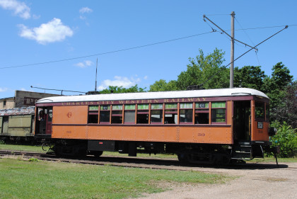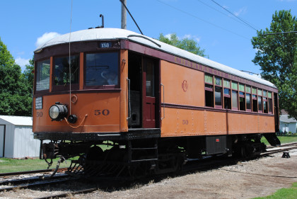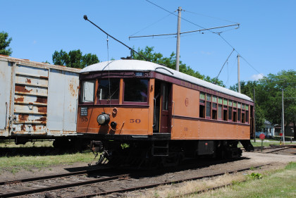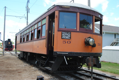 Car Number 50 spent its entire service life on the Charles City Western Railway from 1915 to the end of regular passenger service in 1952. Occasionally it was used in later years for railfan and special trips until 1968 when a tornado damaged overhead electric transmission system, putting the car out of service permanently on the CCW. The car was put in the barn and left there until members of the Iowa Railroad Historical Society found it in 1987, and arranged for its purchase and delivery to Boone that same year.
