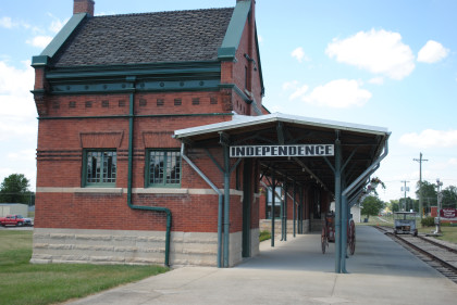 The railroad that is today the Canadian National/Illinois Central arrived in Independence on December 12, 1859. In 1892, the railroad built the current brick passenger depot. Because of the nearby horse race track, a number of notable people arrived in Independence at this station. These include Presidents McKinley and T. Roosevelt, Tom Thumb, Susan B. Anthony, Carrie Nation and John Phillips Sousa and his band.