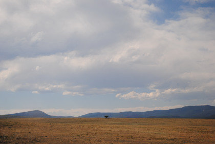 Lone tree hill with the afternoon clouds off to the west as we closed in on Wagon Mound.