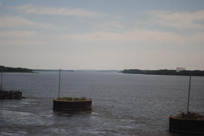 The Chris Guenzler Million Mile Lookout Point. The train headed east onward to Fort Madison and I had an 11:00 AM lunch reservation, sitting with a couple from Kirksville going to Chicago, and enjoyed the Angus beef burger, finishing just before Fort Madison and took my last fresh air break of this trip.