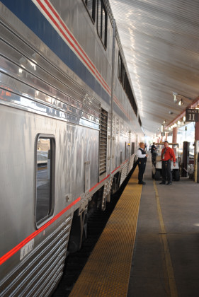 Pacific Surfliner 583 6/13/2012Pacific Surfliner 583 arrived and I boarded the lower level of the Pacific Business Class Car, catching up the story as the train ran to Anaheim and Fullerton then made the final sprint to LAUPT, being delayed by following Metrolink 609. We arrived on Track 10 and I walked down, under and over to Track 11 to board the Southwest Chief.