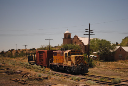 A Santa Fe Southern freight train at Lamy? More slow running was encountered above Apache Canyon then in siding at Glorieta was the westbound Southwest Chief as we started down the grade to the Pecos River.