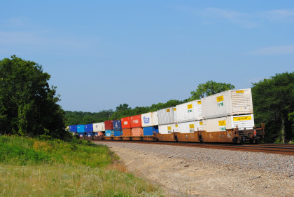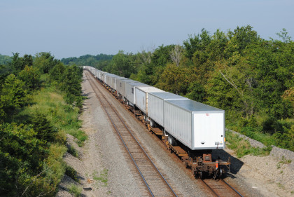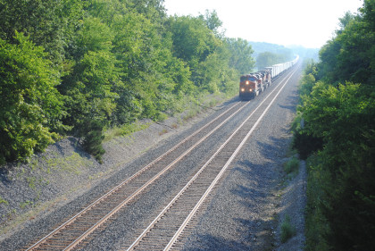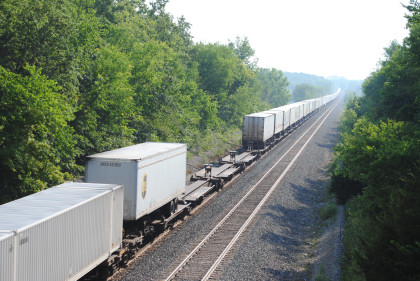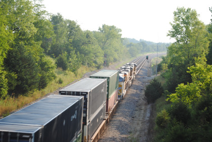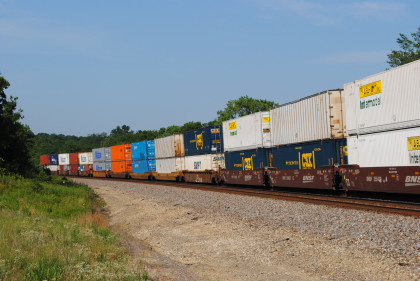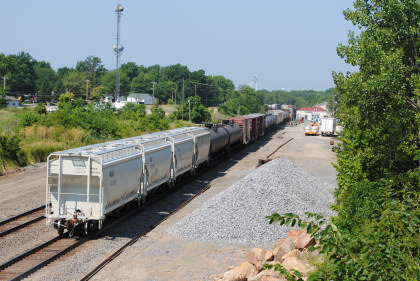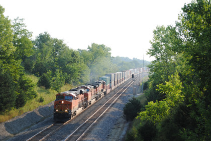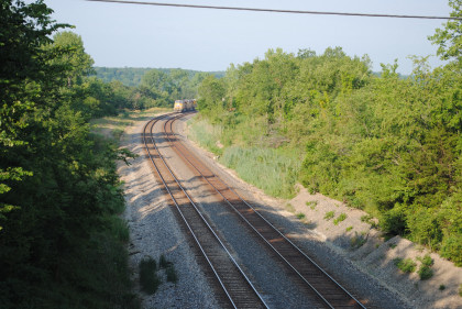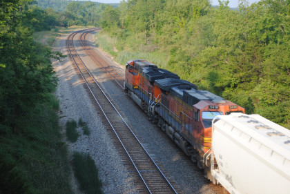 6/29/2012 I arose at the Depot Inn & Suites and following breakfast, a shower and checking the Internet, I drove US 63 to Missouri Highway F, turned right onto Missouri Highway V, to Missouri Highway 6 to Hurdland. I took Route J north to Missouri Highway 11, then turned right on Route P to the bridge over the BNSF mainline and parked on the southeast side just as a train was coming west.