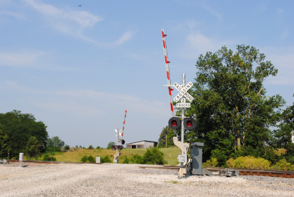 The grade crossing here at the Hurdland Crossovers. I then went to the old bridge just west of Gibbs. A call was made to Bob Cox and I learned the mainline was quiet so I returned to La Plata, stopping at Casey's then went by the Silver Rails Gallery where Amy Cox showed me all the changes that had been made since my last visit. I stopped by and saw Tom and Kelly Marshall before driving out to the Chris Guenzler Million Mile Lookout Point to wait for the over hour late Southwest Chief and had a bonus while I waited.