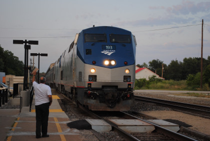 The Southwest Chief arrived this morning, running one hour and 15 minutes late. I took my luggage back to the Depot Inn & Suites before returning the rental car to Enterprise in Kirksville, who gave me a ride back to La Plata and I relaxed the last afternoon away. I went to the Red Rooster for dinner and had a sirloin steak before returning to the hotel to relax before packing for the last time on this trip. Taylor drove me to the station and I waited for my train back to nice cool California. That 105 degree mark yesterday and today made me not to want to come back here in the summer ever again.