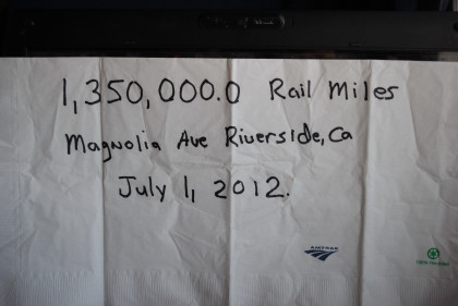 Me getting my 1,350,000.0 rail mile at Magnolia Avenue in Riverside, California at 9:52 AM on July 1, 2012. Special thank you to Joan for taking these pictures.
