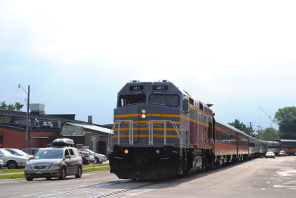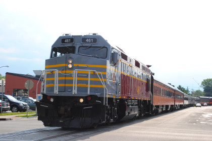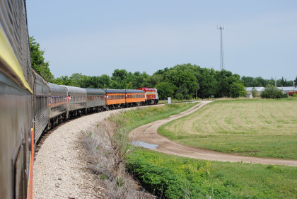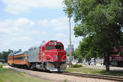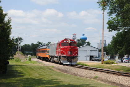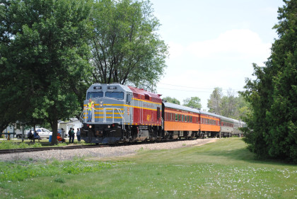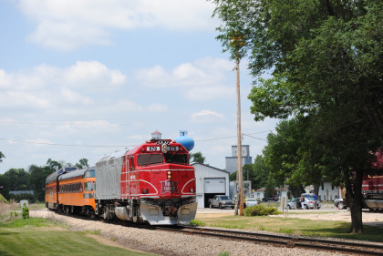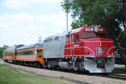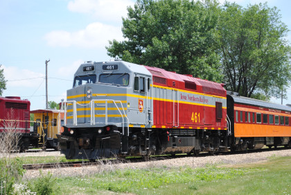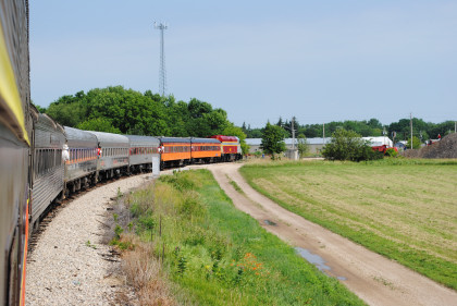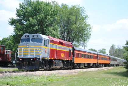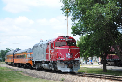 The Train's ConsistIowa Northern F40PH 451, NSRX coach 202 "Wenonah" PPCX 800261, NSRX coach 203 " Nokomis" PPCX 800898, NSRX coach 7616 "Lake Pepin" PPCX 800799, NRHX 142 "Franklin Inn" PPCX 800957, "Braddock Inn" PPCX 800854, New York Central tavern lounge 38 PPCX 800655, High Iron dome 60 "Scenic View" (former Santa Fe 551), NSRX "Super Dome" 53 PPCX 800862, NRSX Skytop Lounge Observation 186 "Cedar Rapids" PPCX 800040 and Iowa Northern F40PH 678.