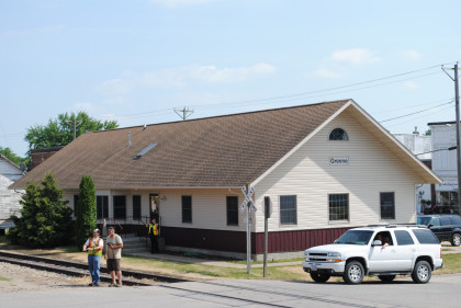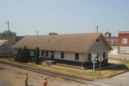 The newer station building in Greene, used as Iowa Northern Railway offices.