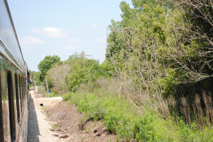 Out into the Iowa forests we ran and would pass many of the Rock Island block signals that used to be used on this line. The train crossed the bridge over the Beaver Creek and then the West Fork of the Cedar River.