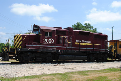 Iowa Northern RailwayThe Iowa Northern Railway operates 163 miles in Iowa between Cedar Rapids in eastern Iowa and Manly in north central Iowa. The railroad connects with the Cedar Rapids & Iowa City Railway in Cedar Rapids; with the Canadian National Railway in Cedar Rapids and Waterloo; with the Canadian Pacific Railway subsidiary Iowa, Chicago and Eastern Railroad in Nora Springs; and with the Union Pacific Railroad in Manly, Waterloo and Cedar Rapids. The railroad is headquartered in the old Paramount Theatre Building at 305 Second Street in Cedar Rapids. Iowa Northern also has Customer Service and General Offices located in Greene and its Bryant Yard Shops are located in Waterloo.