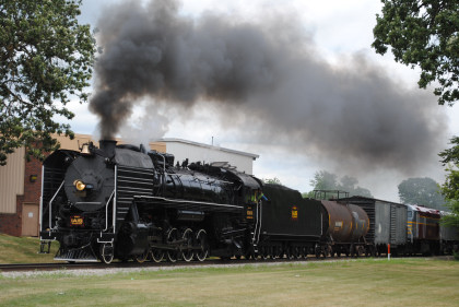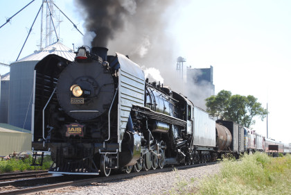 Iowa Interstate 714 had cut off the train and Iowa Interstate QJ 2-10-2 6988 was placed on the now-westbound facing point of our train.